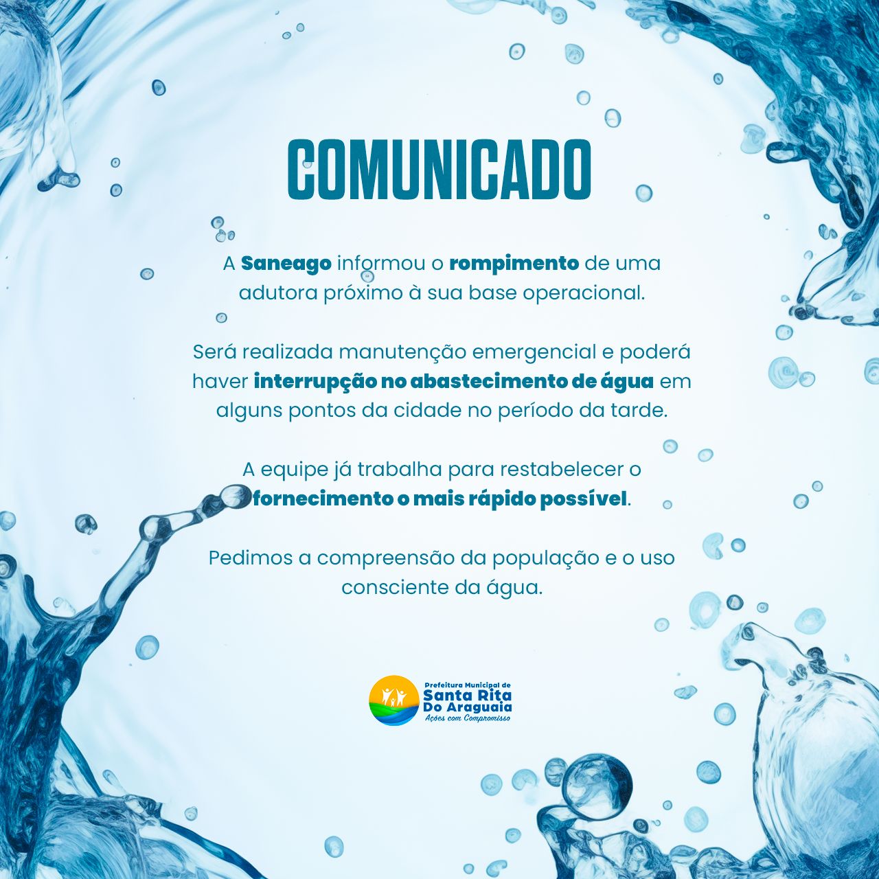 Comunicado: Saneago realiza manutenção emergencial após rompimento de adutora em Santa Rita do…