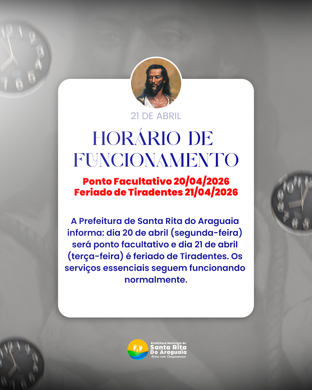 Véspera de Tiradentes terá ponto facultativo em Santa Rita do Araguaia